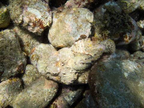 浅瀬に戻ると、ここにもオニオコゼ、海水浴で背びれを踏み抜いたら大変…