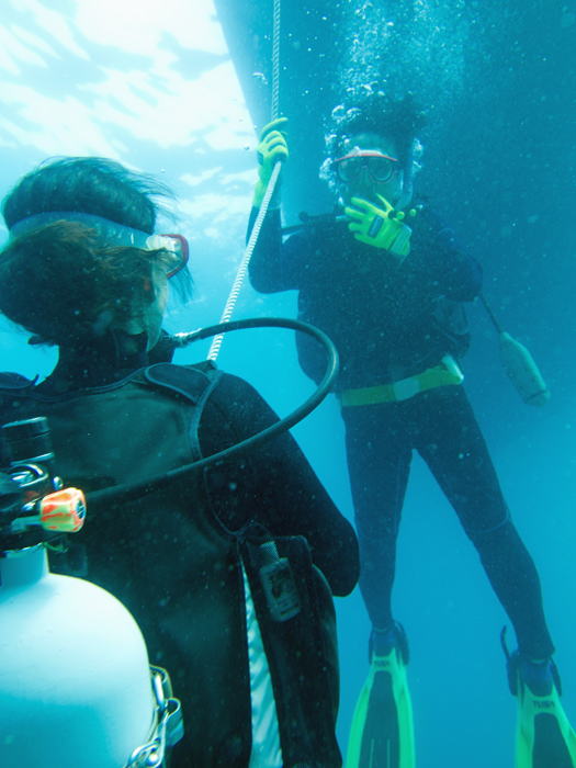 これまた20年ぶり、上通りの同級生オオ○さん。インストラクターのマー君が付き添い潜る