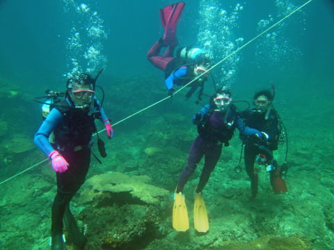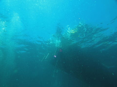 ダイビング3回目のイマイ○君が降りてきた、耳抜きに苦労する