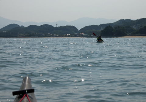 目前をチューさんとカツ○さんのタンディム艇、その先に小さく玄海島が見えている