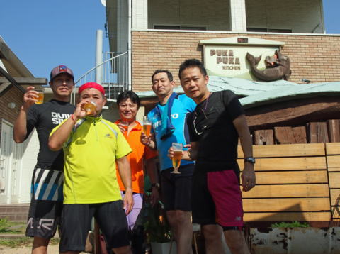 左から能古島一周組も集まってきた、距離は違うのに到着は偶然に同じ時刻