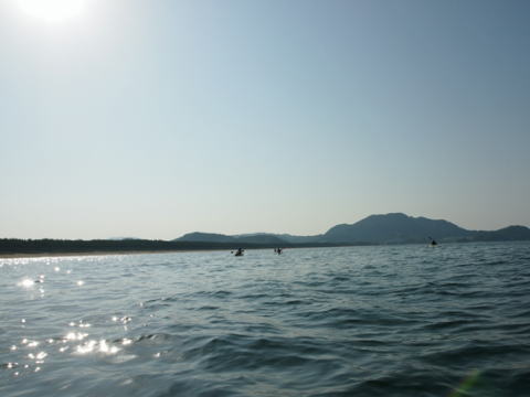 暫時洋上休憩、左先が唐泊崎なので半分ぐらい漕いだ