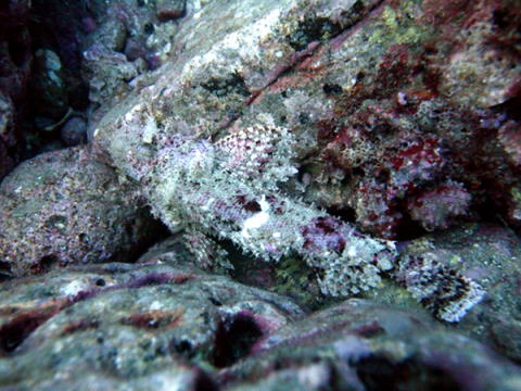 岩影にゴンズイ玉。刺されないよう気を付けながら接写。動きが気持ち悪い