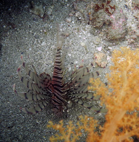 サンゴ裏にゴンズイ玉