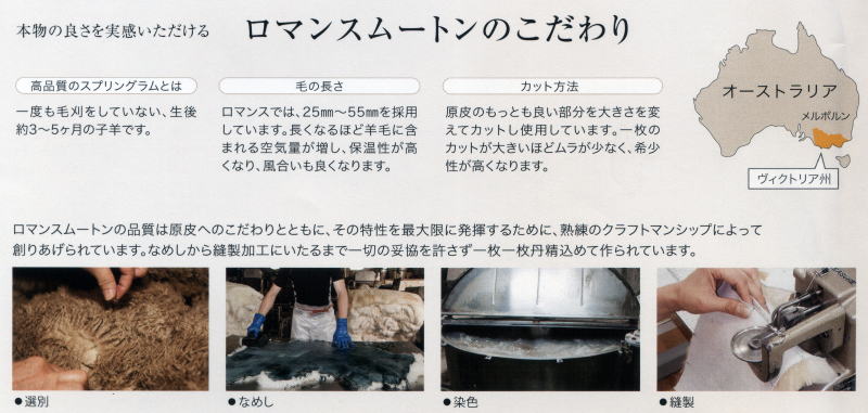 | ●オーストラリア・ビクトリア州産のクロスブレッド種の高品質な毛皮を使用 |